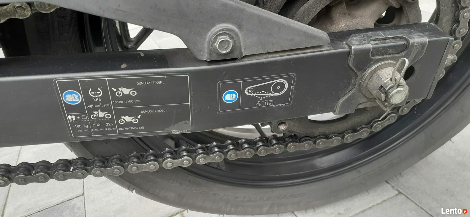 Wymienione klocki hamulcowe, łańcuch i akumulator przy przebiegu 25t.km. Akumulator w zimie podłączany raz w miesiącu pod ładowarkę, ma wyprowadzone złącze ładowania pod tylnym siedzeniem. Używam takiego samego systemu w dwóch innych motocyklach. Akcesoryjny wydech - dzięki czemu jest bardziej zauważalne w ruchu miejskim. Fajny dźwięk. Dodaję oryginał, crash pady, oddam w gratisie uchwyt do telefonu z możliwością ładowania. Widoczne otarcia użytkowe. Motocykl w ciągłej eksploatacji. 503 - pokaż numer telefonu - Kraków i Gmina Wielka Wieś.